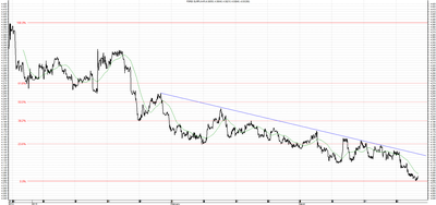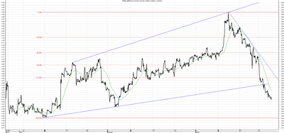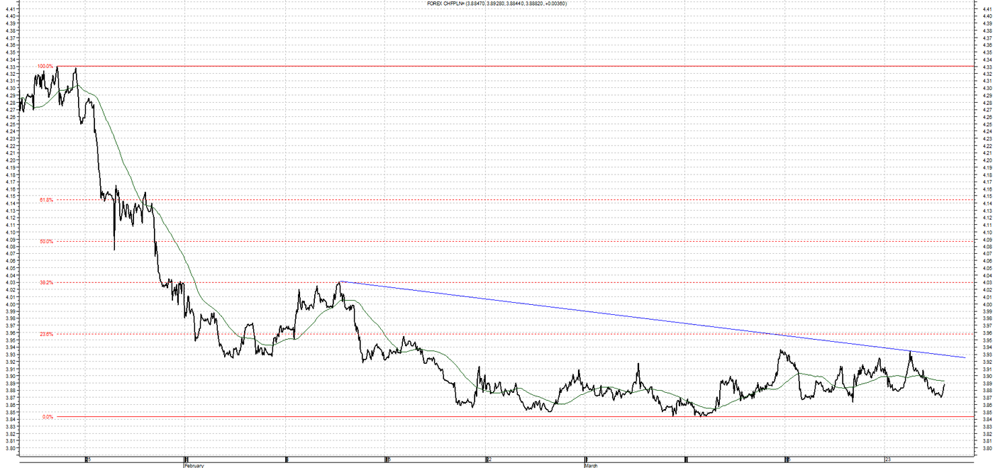 W przypadku franka cała analiza techniczna sprzed wybicia stała się nieistotna w krótkim i średnim okresie. Obecnie mamy do czynienia podobnie jak na euro z trendem spadkowym. W przypadku ruchu w górę opór stanowić będzie linia krótkoterminowego trendu spadkowego na poziomie 3,9250