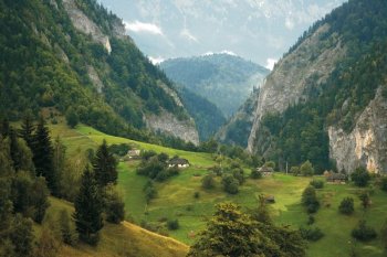 Południowa Bukowina przypominała mi krainę z bajki. Teren był pagórkowaty, przybrany w zieloną sukienkę w białe groszki, z chustą w kolorowe wzory zarzuconą na ramiona. Tak wyglądało to miejsce przez przymrużone oczy. Otworzywszy je szerzej, dostrzegłem, że białe groszki to wszchobecne owce pasące się wśród soczystej zieleni łąk, a kraciasta chusta to nic innego jak ułożone w geometryczne plamy pola uprawne. Między nimi przycupnęły niewielkie wioski. Przechylone płoty, drewniane chaty i malowane okiennice. Słychać było pianie kogutów i beczenie kóz. Sielskiego nastroju dodawali pijany w sztok pasterz, dzieci bawiące się kołem od roweru i para staruszków na chybotliwej ławce przed domem. Naprawdę było tu ładnie.