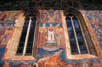 Doszedłszy na miejsce, wcale się nie zdziwiłem, że byłem pierwszym zwiedzającym. To raczej mniszki unosiły brwi nieco wyżej niż zwykle, widząc mnie na środku dziedzińca, który się jeszcze do końca nie obudził. Słońce co prawda wyjrzało zza widnokręgu już jakiś czas temu, ale wysokie ściany klasztoru nie pozwalały mu zajrzeć w głąb. Miałem czas, aby podejrzeć poranną krzątaninę mniszek, które napełniały wodą ze studni blaszane wiadra, zamiatały otoczenie cerkwi i przygotowywały strawę. Kilkakrotnie też obszedłem centralnie położoną cerkiew, podziwiając XVI-wieczne malowidła pokrywające zewnętrzne ściany świątyni. To przecież głównie dla nich wielu z nas decyduje się zajrzeć w te strony. I gdy właściwie już chciałem wychodzić, pierwsze promienie słońca zdołały przedrzeć się przez wysoki mur i rozświetliły dziedziniec i zabudowania klasztorne. Mimo woli spojrzałem na wschodnią ścianę cerkwi i oniemiałem. Ukryte do tej pory w cieniu malowidła jakby ożyły i nabrały dodatkowej mocy, a oglądając po raz wtóry oblężenie Konstantynopola, czułem, jakbym osobiście brał udział w legendarnej obronie miasta.