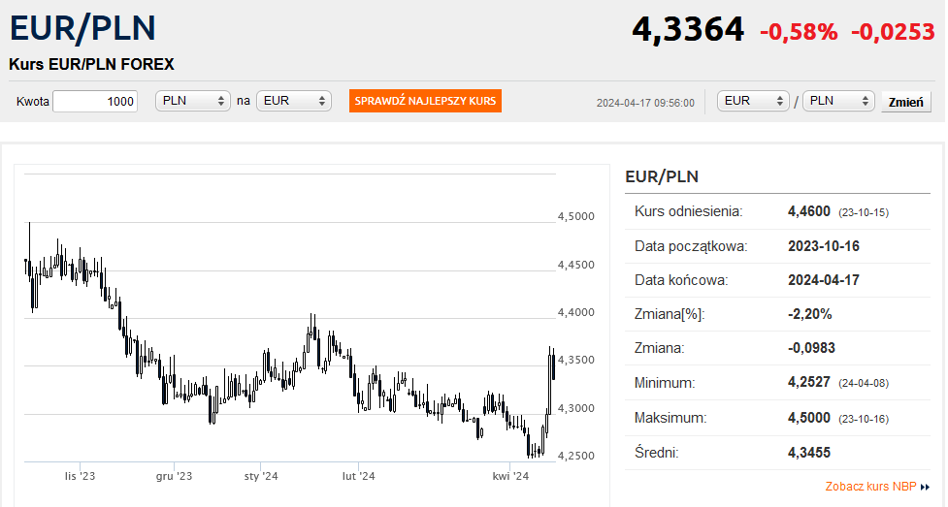 Wtorkowe popołudnie przyniosło skokowy wzrost kursu euro, który podniósł się z okolic 4,30 zł do przeszło 4,37 zł i osiągnął najwyższy poziom od 30 stycznia. W ciągu zaledwie trzech dni roboczych kurs EUR/PLN poszedł w górę o ok. 11 groszy, co jest najmocniejszym takim ruchem od września ubiegłego roku.