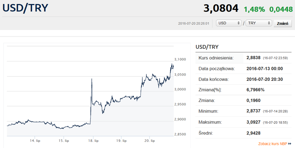 W poniedziałek agencja Moody's poinformowała, że dokona przeglądu sytuacji Turcji po próbie zamachu pod kątem ewentualnego obniżenia ratingu tego kraju - podaje MarketWatch.com.(PAP)