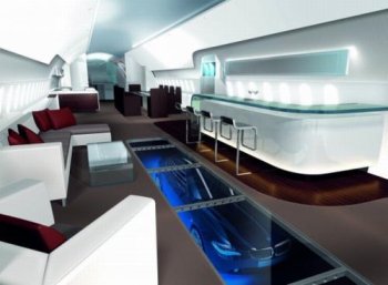 Przeznaczony dla 19 osób przedział pasażerski ma formę open-space – wolnej przestrzeni nie podzielonej praktycznie żadnymi ściankami działowymi. Podłoga wykonana jest ze szkła. Przez również przeszkloną recepcję widać salon z coctail barem, kuchnię oraz salę z kinem domowym.