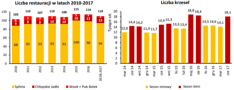 Swoje zrobiły zdarzenia jednorazowe. Zarząd narzekał jednak przede wszystkim na presję płacową i rzeczywiście pozycja ta miała poważny wpływ na obniżenie rentowności biznesu. Choć restauracji pod zarządem Sfinksa nie przybyło, w pierwszym półroczu 2017 roku na wynagrodzenia przeznaczono 2,5 mln zł więcej niż przed rokiem. Wynagrodzenia "zjadają" teraz 26,6 proc. przychodów gastronomicznych, podczas gdy przed rokiem procent ten wynosił 23,4 proc. Sytuacja, jak wynika z zapowiedzi, ma jednak ulegać poprawie.