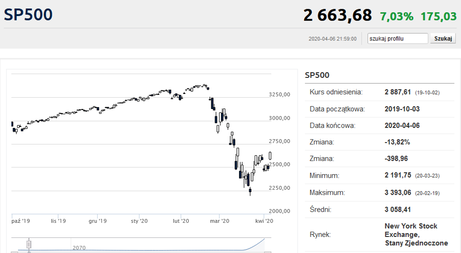 Taka ilość świeżej gotówki nie mogła nie mieć przełożenia na ceny aktywów finansowych. W poniedziałek S&P500 poszedł w górę o 7,03% i finiszując z wynikiem 2663,68 pkt znalazł się najwyżej od 13 marca. Dow Jones po zwyżce o 7,73% (czyli o ponad 1600 punktów) osiągnął wartość niemal 22 680 pkt. Nasdaq zwyżkował o 7,33%, kończąc sesję na poziomie 7 913,24 pkt.