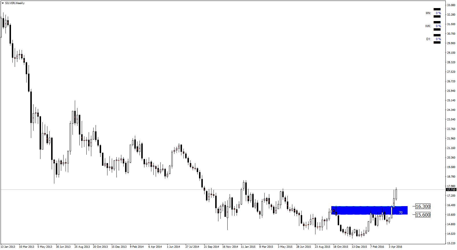 Srebro przez ostatnie 4 tygodnie mogło nas zaskoczyć. Z 15USD do 17 USD, jest to naprawdę imponujący wzrost. Przez ostatnie 4 tygodnie srebro w relacji procentowej podrożało o wiele bardziej niż złoto, ponieważ wskaźnik gold/silver znajduje się na bardzo wysokich poziomach.Kontynuacja wzrostów jest bardzo prawdopodobna. Ostatni raport COT (commitment of traders) wskazuje na to, że fundusze hedgingowe, inwestycyjne oraz zarządzający środkami w dalszym ciągu skupują srebro oraz inne metale.