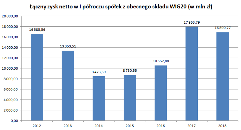 Po czterech latach wzrostów w I półroczu 2018 roku zyski największych spółek z GPW wyhamowały.