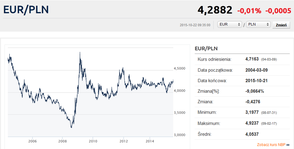 Dlaczego tak się dzieje w kraju, którego gospodarka rozwija się dwa razy szybciej niż strefa euro (tak, wiem, że to żadne osiągnięcie, bo euroland drepcze w miejscu) i w którym stopa procentowa banku centralnego wynosi 1,50% wobec 0,05% w EBC? Trudno o prostą i poprawną odpowiedź, bo zapewne nie wynika to tylko z jednego czynnika. Ale spadkowy trend złotego trwa od sierpnia 2008 roku, więc na rzeczy musi być coś więcej niż tylko ryzyko polityczne przed wyborami parlamentarnymi.