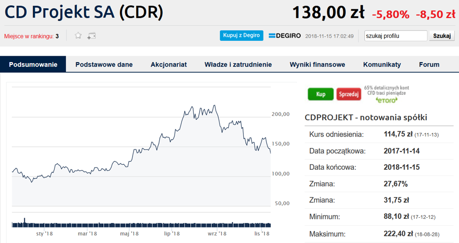 | mWIG 40 | Polska | 3874,07 | -0,13 | -1,19 | -2,51 | -17,85 | -20,08 |