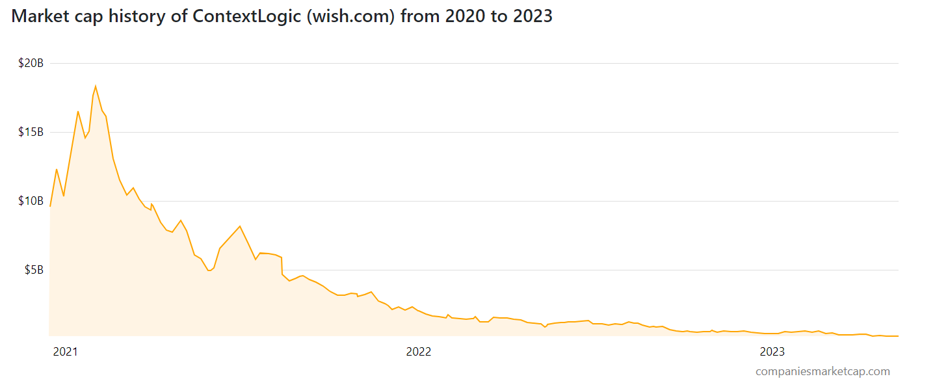 Wish był najchętniej ściąganą aplikacją e-commercową, a roczne przychody spółki przekraczały 2,5 mld dolarów i chociaż po 10 latach od założenia firma wciąż nie była rentowna, liczono, że wkrótce się to zmieni i w lutym 2021 r. wywindowano cenę akcji do ponad 32 dol., a kapitalizację do 18,3 mld dol. Wszystko szło dobrze, spółka była sponsorem słynnej drużyny Los Angeles Lakers, a Szulczewski mógł wkrótce oficjalnie zostać uznanym za najbogatszego Polaka, gdyby cena akcji utrzymała się przynajmniej na poziomach z IPO.