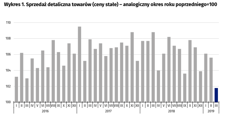 Publikacja raportu o sprzedaży detalicznych kończy serię marcowych danych makroekonomicznych z polskiej gospodarki. Jeszcze przed świętami poznaliśmy statystyki z rynku pracy, w których zaskoczył wolniejszy od oczekiwań wzrost wynagrodzeń. Jeszcze bardziej – i tym razem pozytywnie – zaskoczyły dane z przemysłu, gdzie wzrost produkcji ponownie przekroczył oczekiwania ekonomistów i to pomimo wciąż bardzo słabych odczytów PMI.