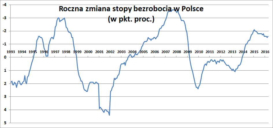 Na koniec kwietnia w urzędach pracy (?) zarejestrowanych było 1.521,8 tysięcy bezrobotnych, czyli o 78,7 tys. mniej niż w marcu i o 260,4 tys. mniej niż w kwietniu 2015 roku. W kwietniu wyrejestrowano 251,4 tys. osób, a zarejestrowano 172,8 tys. Ale tylko co drugi bezrobotny został wykreślony z rejestru z powodu podjęcia pracy.