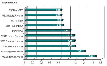 Poniżej prezentujemy zestawienie najczęściej wykrywanych wirusów w Polsce i na świecie (dane w %): Świat:
