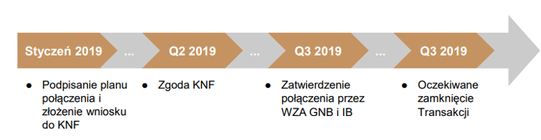 Fuzja prawna obu banków planowana jest na III kwartał 2019 roku, a jej warunkiem koniecznym jest m.in. zezwolenie Komisji Nadzoru Finansowego. W planie założono, że decyzja nadzorcy pojawi się w II kwartale 2019, w III kwartale sprawę domkną zaś walne zgromadzenia obu spółek, które ostatecznie zatwierdzą fuzję.