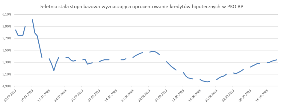 Pod koniec października stała stopa bazowa znajduje się, po okresie wzrostu, na poziomie dokładnie takim jak w dniu pierwszej obniżki stóp procentowych we wrześniu. Wzrost oprocentowania hipotek „stałoprocentowych” miał miejsce w kilku instytucjach na rynku. Tymczasem dla kredytów ze zmiennym oprocentowaniem kierunek zmian był odwrotny – stawki podążają za spadającymi na razie wskaźnikami z rynku międzybankowego, mimo stopniowych podwyżek marż.