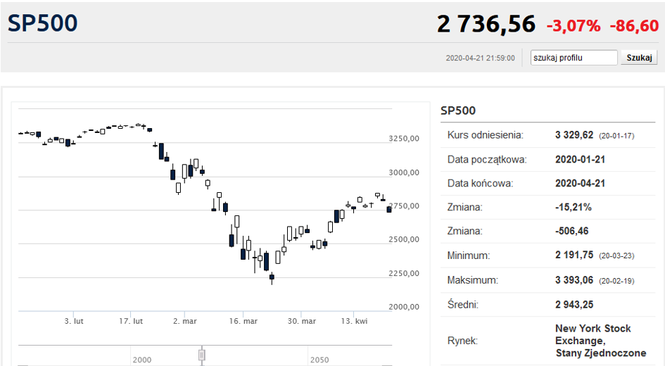 Znamienne jest też, jak rynek reaguje na wyniki spółek. Mimo lockdownu Coca-Cola pozytywnie zaskoczyła poziomem zysków, ale kurs jej akcji i tak spadł o 2,5%. Walory IBM-a przeceniono o 3% po tym, jak spółka odwołała tegoroczną prognozę wyników. Za to w handlu posesyjnym o 1,7% drożały walory Netfliska, który po zakończeniu sesji pochwalił się wynikami za I kw. Inwestorom najwyraźniej spodobał się fakt, że spółka zanotowała przyrost liczby abonentów o 15 mln.