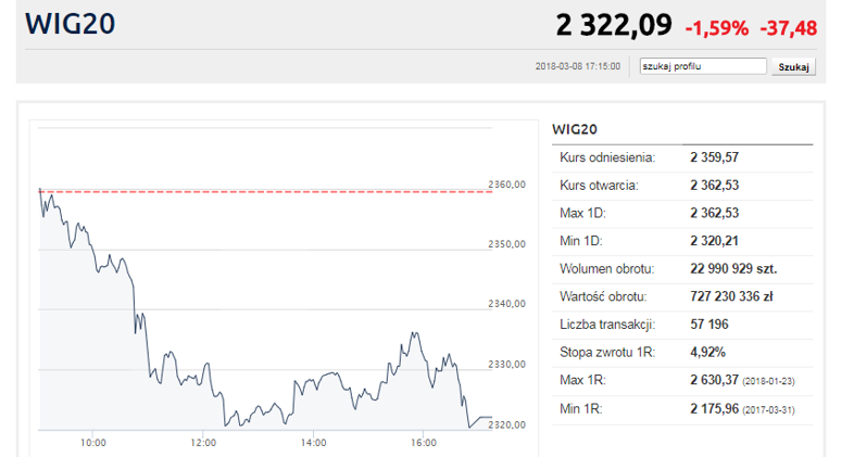 | WIG 20 | Polska | 2322,09 | -1,59 | -0,55 | -3,51 | 4,92 | -5,65 |