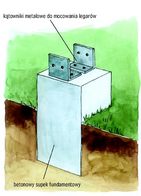 Drewniane legary nie mogą się stykać bezpośrednio z betonem, dlatego trzeba je odizolować warstwą papy lub umieścić w specjalnych metalowych obejmach.