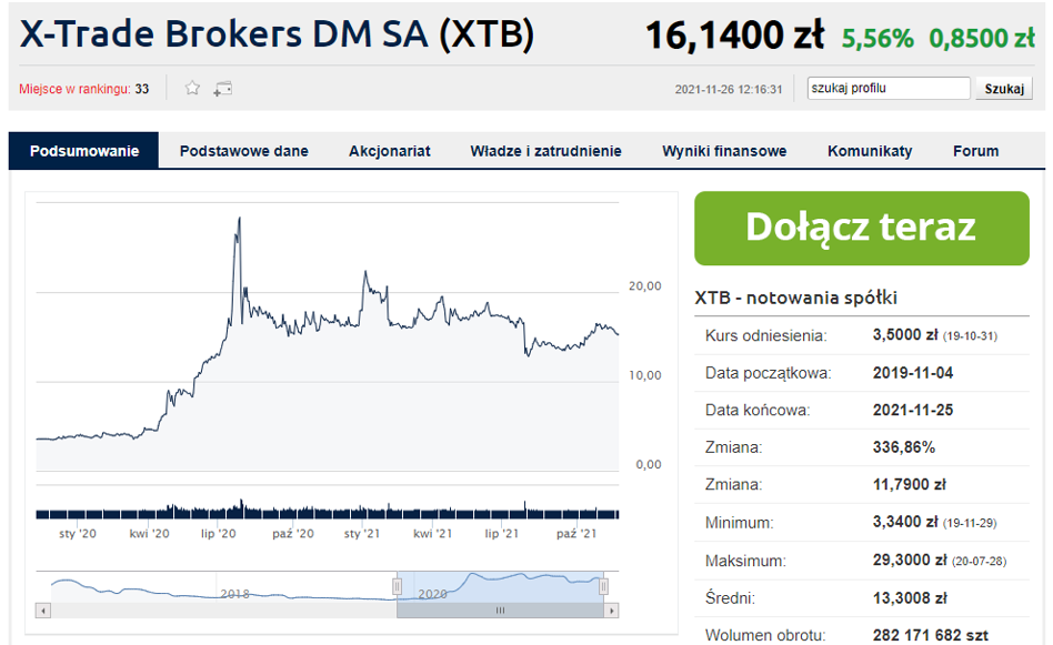 XTB w szczycie covidowej hossy było notowane po blisko 30 zł za akcję i dało zarobić od początku 2020 r. do szczytu ponad 600 proc. Później nastąpił okres kilkumiesięcznej konsolidacji na poziomie 15-17 zł i spadek w lipcu bieżącego roku po informacji o kwartale ze stratą w wyniku nieudanych operacji na kryptowalutach. Kurs zdołał jednak odbić i wrócić ponad poziom 15 zł. W piątkową wyprzedaż XTB zyskuje ok. 6,6 proc. i jest to najlepszy wynik w mWIG40.