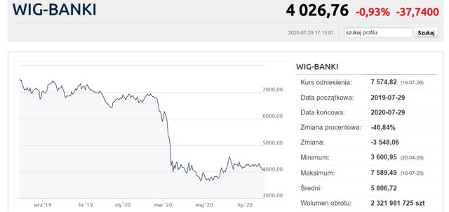 W pierwszej 10-tce najgorszych stóp zwrotu w tym roku znalazło się miejsce dla aż czterech banków, z czego trzy na co dzień notowane są w indeksie WIG20. To Pekao, Santander Polska oraz mBank, stawkę uzupełnia Millennium. Akcje całej czwórki potaniały o blisko 50 proc. Brak odbicia na bankach nie tylko jest bezpośrednią pochodną koronawirusa. Owszem, obawy o kondycje zadłużonych klientów i koniunkturę zrobiły swoje, brak odbicia to jednak przede wszystkim efekt decyzji RPP o cięciu stóp procentowych do niemal zera. To poważnie uderza w zyski banków, dodatkowo inwestorzy mają w pamięci jak niechętna podwyżkom stóp jest RPP i obawiają się, że zerowe stopy staną się nową normalnością w Polsce.