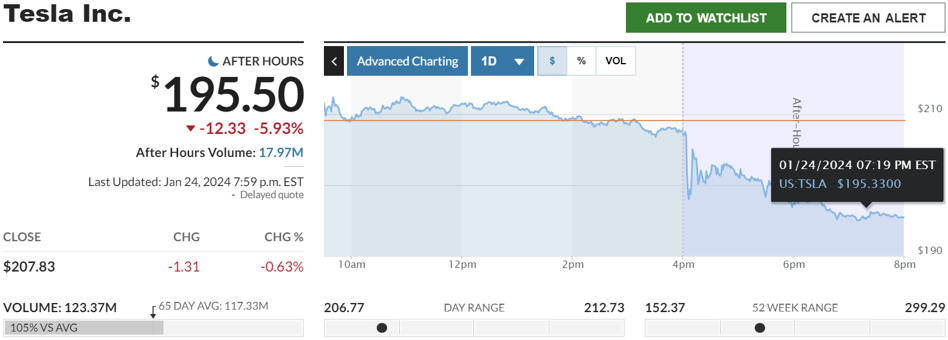 Skorygowany zysk na akcję Tesli wyniósł w IV kwartale 2023 r. 71 centów, podczas gdy analitycy spodziewali się 74 centów. Skorygowany zysk netto spółki sięgnął 2,486 miliarda dolarów w porównaniu z 2,61 mld. oczekiwanymi przez Wall Street.