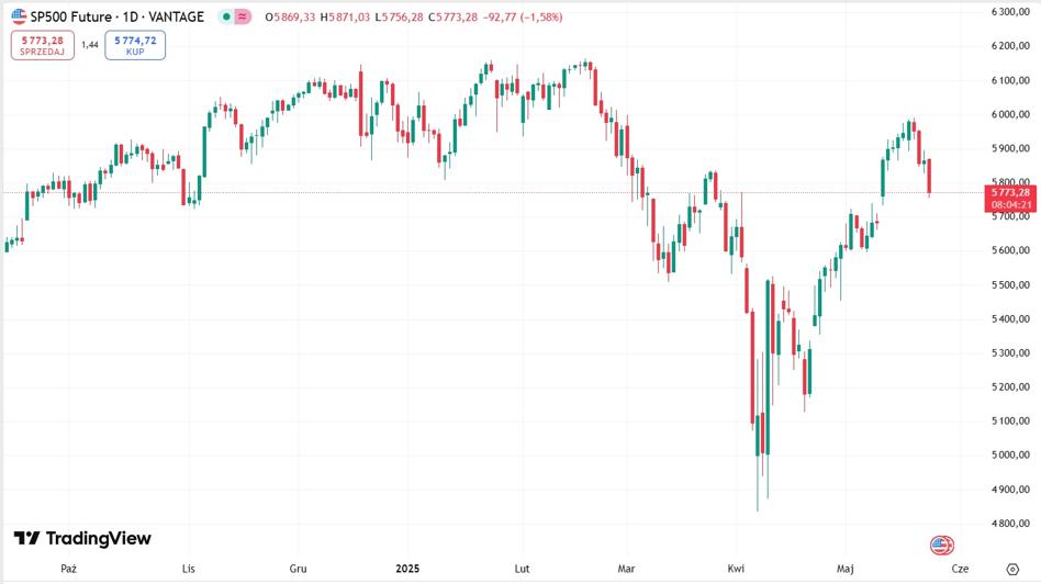 To słowach Trumpa stanowiących kolejną eskalację wojny handlowej rynki zanotowały przecenę - kontrakty terminowe na S&P 500 straciły 1,5% w przedsesyjnych notowaniach, a Eurostoxx 600 spadł o 2%, DAX traci ponad 2,2%, a WIG20 traci ok. 2%. Tanieje ropa zarówno Brent jak i WTI tracą po ok. 1%, zyskuje za to złoto - prawie 2%, a notowania zmierzają w stronę 3360 dol. za uncję. Notowania EUR/USD spadają o -0,26% do poziomu ok. 1,132.