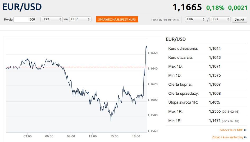 Na słowa Trumpa momentalnie zareagowała amerykańska waluta, która oddała cały dzisiejszy zysk wobec euro, z powrotem osłabiając się do poziomu powyżej 1,1660 dolara za euro.