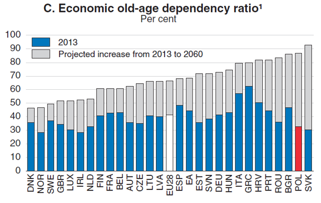 Według prognoz OECD za 45 lat współczynnik zależności wzrośnie z ok. 30% do blisko 90%. To zdecydowanie więcej niż w Grecji, gdzie wskaźnik ten przekroczył 60% skutkując utratą płynności finansowej przez państwo.