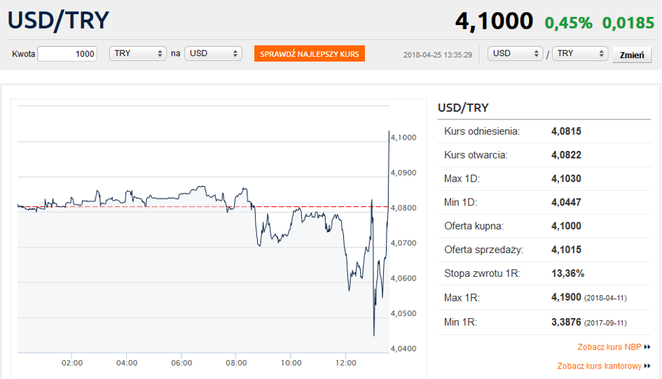 Pierwsza reakcja rynku walutowego początkowo była umiarkowanie pozytywna. Kurs dolara początkowo obniżył się z przeszło 4,08 do 4,05 liry. Ale już o 13:36 powrócił do poziomu niemal 4,10. Od początku roku lira straciła do dolara 6,6%, a przez ostatnie trzy lata osłabiła się aż o 34%.
