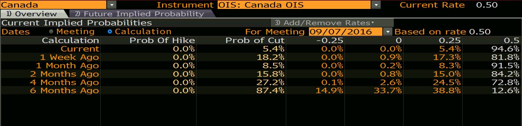 Bank Kanady wczorajszego dnia pozostawił stopy procentowe na niezmienionym poziomie. Prezes Banku Centralnego, Stephen Poloz w dalszym ciągu pokłada nadzieje w ożywienie eksportu. Został obniżony również wzrost gospodarczy na 2016 oraz 2017 rok. Poloz dodał, że Brexit obniży PKB Kanady o 0,1% przez następne 2 lata.