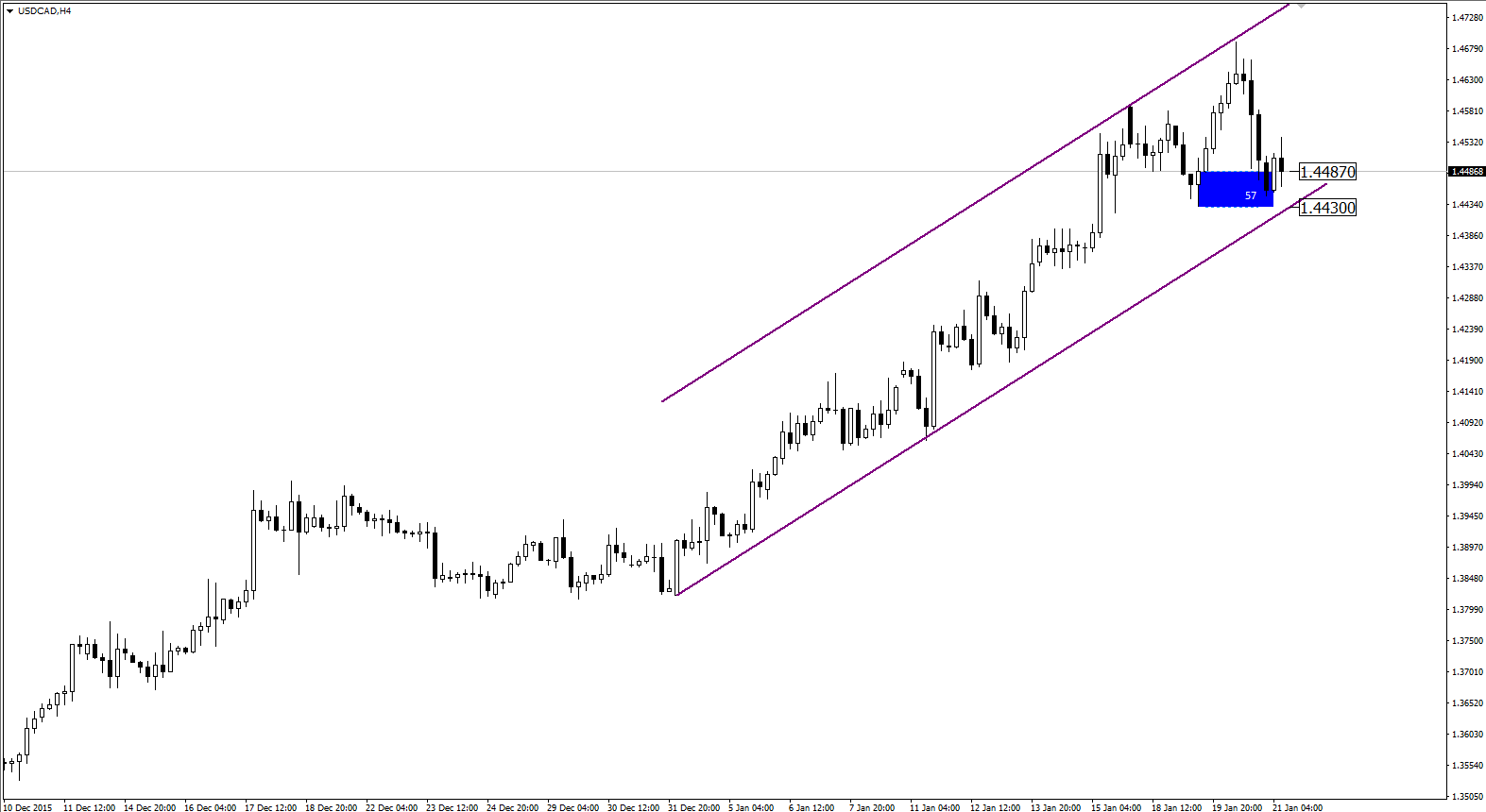 Na wykresie czterogodzinnym znajdujemy się na wsparciu 1,443-1,448. Jeżeli niedźwiedziom uda się pokonać dane wsparcie to będziemy mieli do czynienia z korektą wyższego rzędu. Bazowym scenariuszem pozostanie kontynuacja trendu wzrostowego.