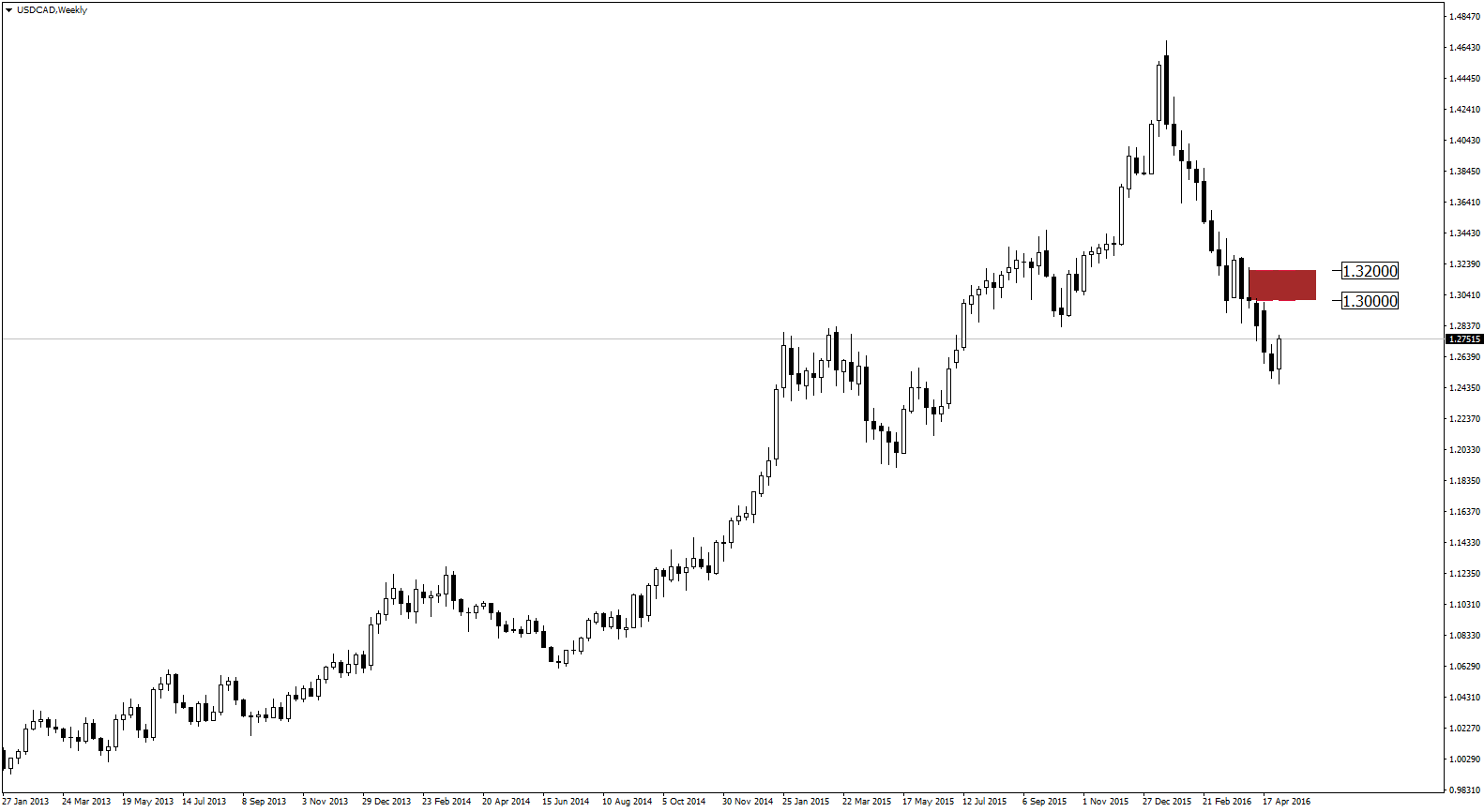 Na interwale tygodniowym najbliższa strefa podaży znajduje się w przedziale notowań 1.30-1.32. Czy dojdzie do tak mocnej korekty? Bardzo prawdopodobne, jednakże należy również obserwować notowania ropy naftowej.