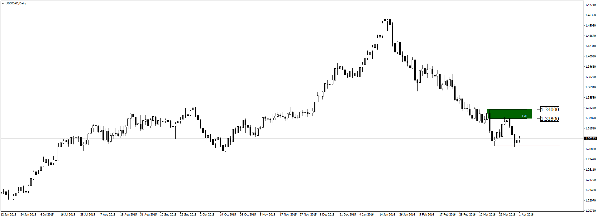 Na parze walutowej USD/CAD na interwale dziennym prawdopodobnie ukształtowała się formacja podwójnego dna. Wczorajszego dnia niedźwiedzie atakowali ostatnie minima, zdołali je pokonać, jednakże kupujący zanegowali cały ruch spadkowy. Jednakże należy pamiętać, że trend na tej parze jest w dalszym ciągu spadkowy, dopiero znaczna przecena ropy mogłaby go zmienić.