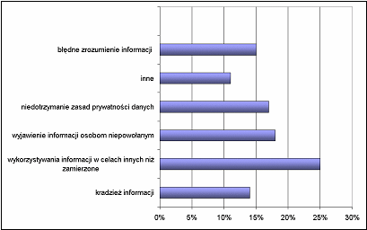 Obawy dotyczące przesyłania informacji drogą internetową dotyczą głównie wykorzystywania uzyskanych informacji w celach innych niż zamierzone, wyjawienie informacji osobom niepowołanym, niedotrzymanie zasad prywatności danych.