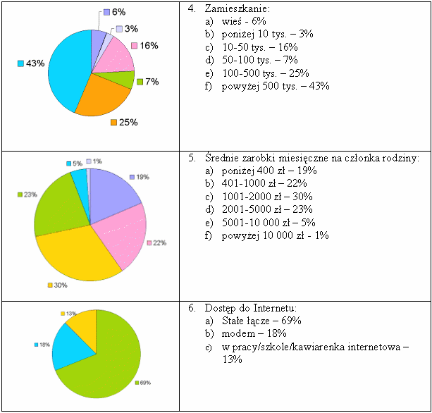 W badaniu udział wzięli głównie mężczyźni w wieku od 19 do 35 lat posiadający głównie wykształcenie wyższe lub średnie i zamieszkali w miastach powyżej 500 tyś. mieszkańców. Szczegółowy rozkład próby przedstawiają poniższe dane.