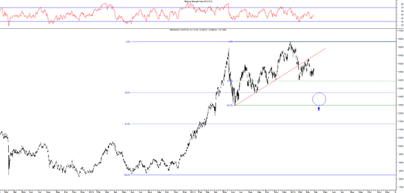 Techniczna sytuacja japońskiego indeksu szerokiego rynku Nikkei 225 również przemawia za dalszą przeceną. Po spektakularnych wzrostach z lat 2012-2013 kurs analizowanej pary porusza się w trendzie bocznym. W marcu kurs próbował powrócić ponad średnioterminową linię trendu (kolor czerwony), ale atak popytu zakończył się niepowodzeniem, a w konsekwencji wyraźną przewagę uzyskała strona podażowa. Moim zdaniem techniczne oraz fundamentalne przesłanki przemawiają za dalszą przeceną na giełdzie w Tokio. Sygnał do realizacji takiego scenariusza otrzymamy w momencie spadku kursu poniżej 14000 pkt (lokalne minima), co otworzyłoby drogę do zniżki w okolice 12455 - 13240 pkt. Geneza tych poziomów została przedstawiona na wykresie powyżej.