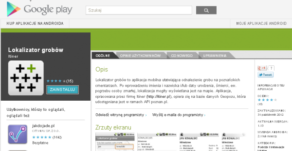 Dostęp do tego typu serwisów coraz częściej mamy także za pomocą telefonów komórkowych. W Google Play można np. pobrać lokalizator grobów cmentarza poznańskiego czy szczecińskiego. Z aplikacją tego typu nie zgubimy się na dużym i zatłoczonym cmentarzu.