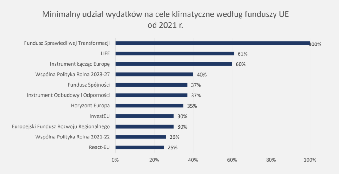 Pewien odsetek tych nakładów inwestycyjnych byłby angażowany nawet bez Europejskiego Zielonego Ładu i pakietu Fit For 55. Jak jednak szacują eksperci, koszty towarzyszące unijnym wymaganiom określonym w Europejskim Zielonym Ładzie oraz pakiecie Fit For 55 szacowane są na ok 2,5-3 proc. PKB, a więc 60 mld zł rocznie. Gros tych środków pochłoną wydatki niezbędne przy wspieraniu procesu odchodzenia od węgla. Istotnym składnikiem inwestycji są także wydatki na ograniczenie zużycia energii przed gospodarstwa domowe oraz redukcję emisji przez transport oraz przemysł. Z kolei z analizy banku PEKAO wynika, że z kwoty 527 mld zł niezbędnej, aby sprostać wymogom Fit for 55 blisko połowa wydatków i tak musiałaby zostać poniesiona.
