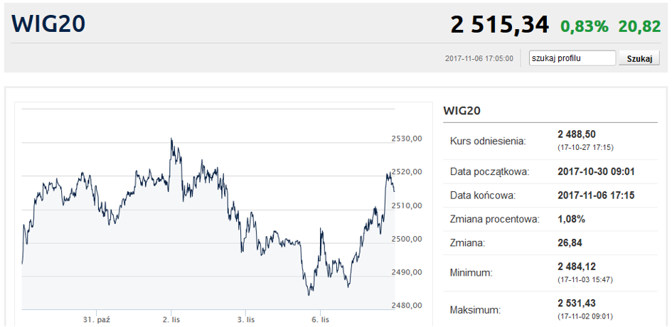 | WIG 20 | Polska | 2515,34 | 0,83 | 1,08 | 1,45 | 43,06 | 29,13 |