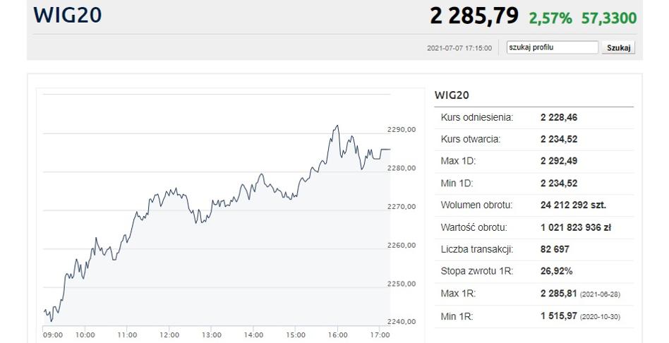 Wzrostem o 2,6 proc. zakończył środową sesję WIG20, co jest jednocześnie najlepszym sesyjnym wynikiem od przeszło trzech miesięcy. Przełamanie docenić tym bardziej warto, że ostatnie sesje nie napawały optymizmem, w środę indeks warszawskich blue chipów pokazał jednak, że wciąż nie można zamykać tematu hossy.