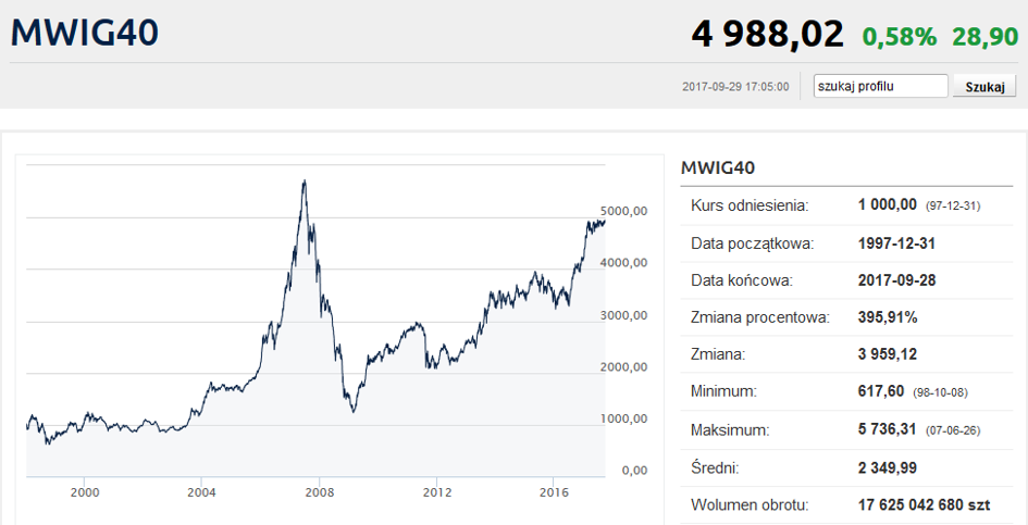 | mWIG 40 | Polska | 4988,02 | 0,58 | 1,28 | 3,23 | 22,88 | 18,32 |