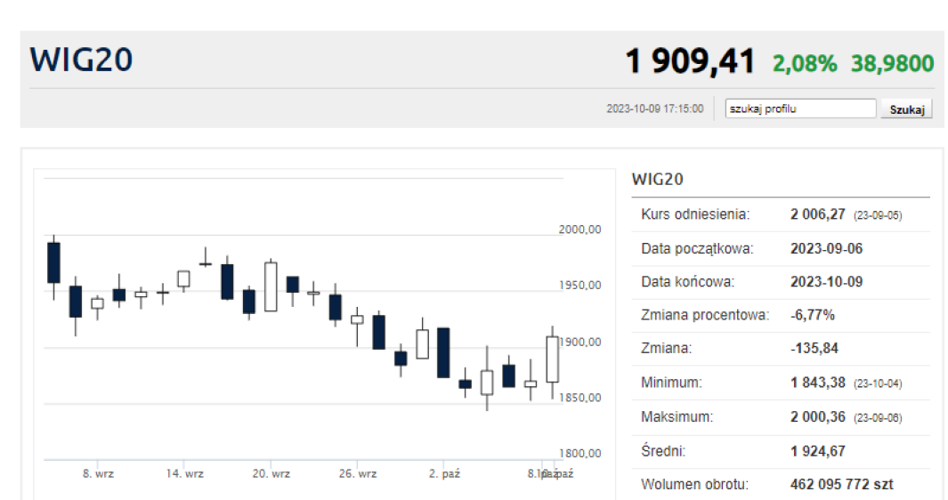 Co ma rosnąć, nie spadnie, można powiedzieć po poniedziałkowej sesji na GPW. Indeks największych spółek zaliczył spektakularny wzrost przy słabszym otoczeniu rynkowym związanym z atakiem Hamasu na Izrael. Wzrosty cen ropy napędziły popyt na akcje Orlenu, a silny sektor bankowy nie cofa się od decyzji RPP o mniejszym cięciu stóp procentowych.