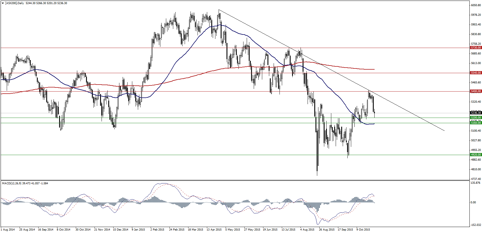 Nieudaną walkę o przełamanie wsparcia 5200 punktów stoczyła dziś strona podażowa w Australii. Na wykresie ASX 200 widzimy aktualnie potężną szpulkę. Utrzymanie się tej patowej sytuacji do końca dnia da, z technicznego punktu widzenia, dużą szansę na zanegowanie wczorajszych spadków zaraz po weekendzie. Najbliższym celem kupujących będzie wówczas linia budowanego od sześciu miesięcy średnioterminowego trendu spadkowego, oraz silny opór 5400 punktów. Ewentualnym sygnałem kontynuacji spadków będzie przełamanie rejonu obrony 5200 – 5160 oraz 50-okresowej średniej kroczącej.