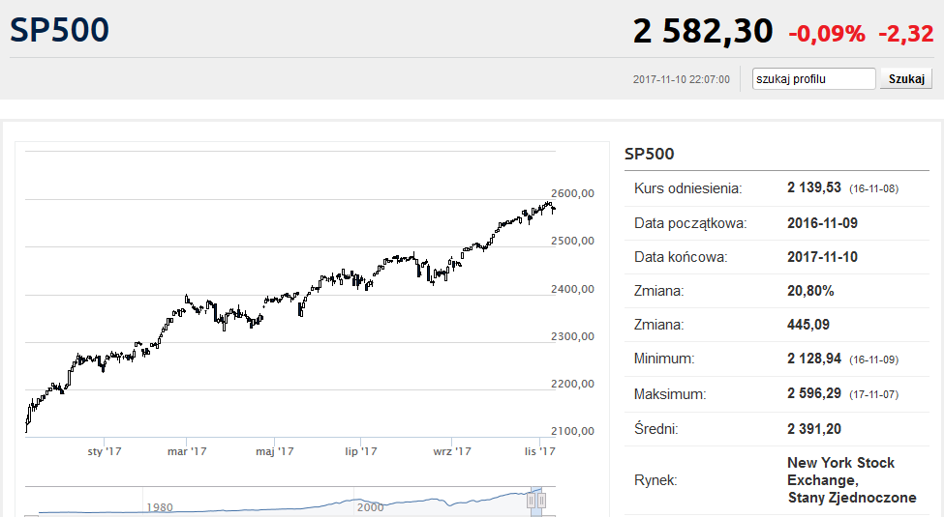 Nadzwyczajnie niska zmienność jest cechą charakterystyczną dziewiątego roku hossy na nowojorskich parkietach. Choć trudno w to uwierzyć, ale przez ostatnie 12 miesięcy (czyli od wyborów prezydenckich) S&P500 ani razu nie spadł o choćby 3% względem szczytu, przeszło 50 razy poprawiając rekordy wszech czasów.