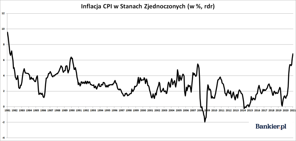 Listopadowy odczyt inflacji CPI nie był zaskoczeniem. W skali roku oficjalnie raportowany (i w wielu kręgach uważany za zaniżony) wzrost kosztów życia w USA sięgnął 6,8%, co jest najwyższym wynikiem od czerwca 1982 roku. Najwyższa od ponad 30 lat była także tzw. inflacja bazowa, która wyniosła 4,9%, co także było rezultatem zgodnym z oczekiwaniami.