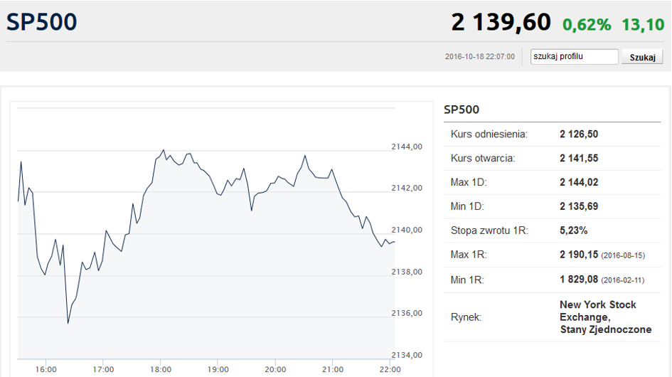 Dow Jones poszedł w górę o 0,42%. S&P500 zyskał 0,62%, osiągając wartość 2.139,60 pkt. Nasdaq wzrósł o 0,85%. Wzrostom towarzyszyły dość niskie obroty – wolumen na NYSE i Nasdaqu był o 15% niższy od średniej z ostatnich 20 sesji.