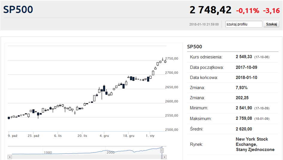 W ten sposób DJIA, SP500 i Nasdaq przerwały trwającą sześć sesji wzrostową serię. Jednakże nadal znajdują się tuż poniżej rekordów wszech czasów. A także 20-30% wyżej niż rok temu, gdy także biły historyczne rekordy. W piątek na Wall Street rusza sezon publikacji wyników za czwarty kwartał. Według danych Reutera analitycy spodziewają się, że zyski spółek tworzących S&P500 wzrosną o 11,8% rdr.