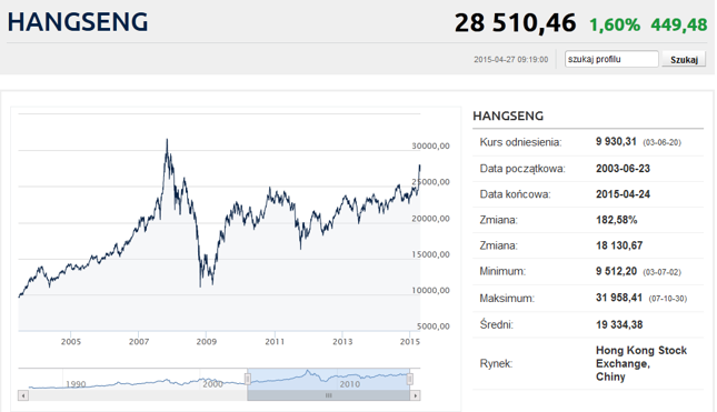 Hongkoński indeks Hang Seng poszedł w górę o 1,5% i wyżej niż obecnie był tylko w szczycie hossy w 2007 roku. Wielka chińska hossa nie ominęła Tajwanu, gdzie indeks Taiex przebił szczyt z 2007 roku i niemal zrównał się z rekordem wszech czasów sprzed 15 lat.