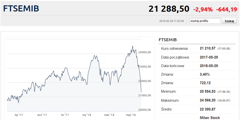 Jeśli Liga i R5G tak postawią sprawę w nadchodzących wyborach, to rynkowe perturbacje są niemal pewne. Już teraz jest nerwowo. Rentowność włoskich obligacji 10-letnich przekroczyła próg 3% i jest najwyższa od czterech lat. W poniedziałek rentowność włoskich 10-latek podskoczyła o 22 punkty bazowe, a we wtorek rano rośnie już o ponad 70 pb.! Taki ruch na słynących ze stabilności rynkach obligacji skarbowych nosi znamiona regularnej paniki. Wzrost rentowności oznacza spadek ceny rynkowej obligacji.