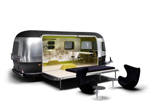 Samochód oraz prawie siedmiometrowa przyczepa Airstream powstały z myślą o surferach, nurkach lub też po prostu ludziach lubiących wodę i plażę. Projekt został wykonany przez duńską firmą projektującą meble – Republic of Fritz Hansen. To właśnie oni odpowiedzialni byli za wnętrze samochodu oraz przyczepy kempingowej. Jak można się szybko zorientować, wszystko zostało podporządkowane raczej wodnym klimatom niż funkcjonalnościom standardowej przyczepy kempingowej – nie znajdziemy w niej charakterystycznych elementów, takich jak toaleta czy kuchnia. Jest natomiast stolik, krzesła, fotele, a jej bok otwiera się i tworzy swego rodzaju leżak. Co ciekawe, wszystkie elementy użyte do wykończenia przyczepy są wodoodporne.