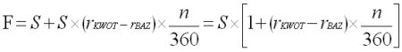 Dla kontraktów terminowych na waluty pożytkami są uzyskane odsetki z tytułu przechowywania na rachunku bankowym nabytej waluty bazowej. Wartość tych pożytków jest określana mianem punktów swapowych, które oblicza się z następującego wzoru: